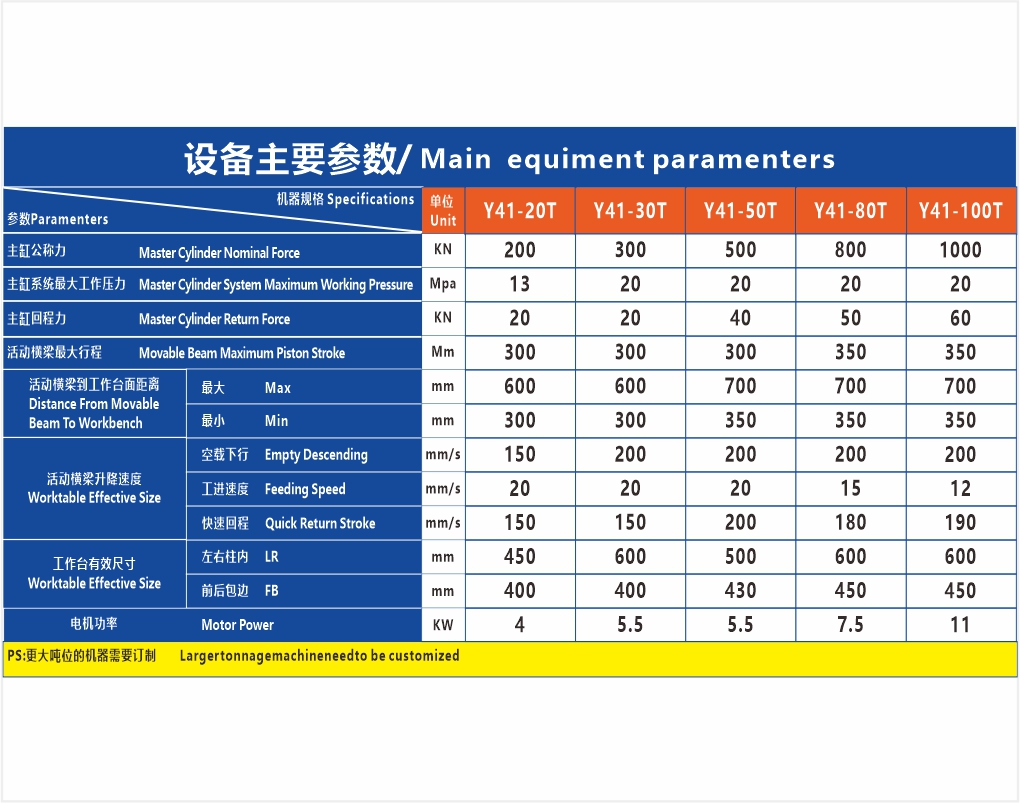 Y41單柱液壓機用途:適用于可塑性材料的壓制工藝,如沖壓、彎曲、薄拉伸、沖裁、沖壓等。